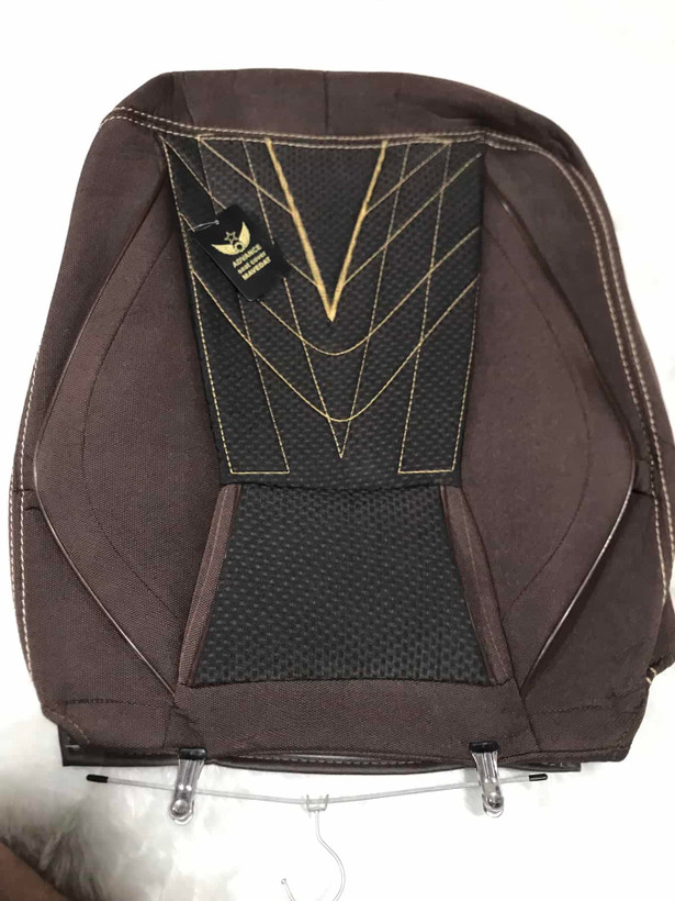 روکش صندلی پرشیا پژو پارس مدل ۹۶ به پایین سوپر وی ای پی رنگ قهوه ای چرم و برزنت دوخت عالی درجه یک