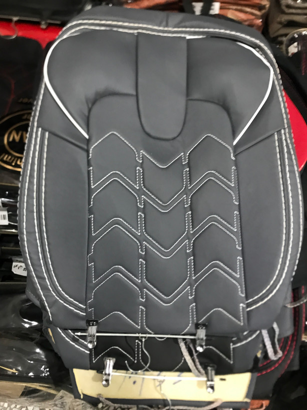 روکش صندلی ساینا تمام چرم وی ای پی رنگ طوسی نوار سفید