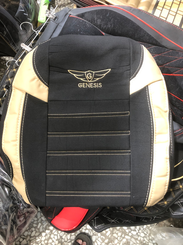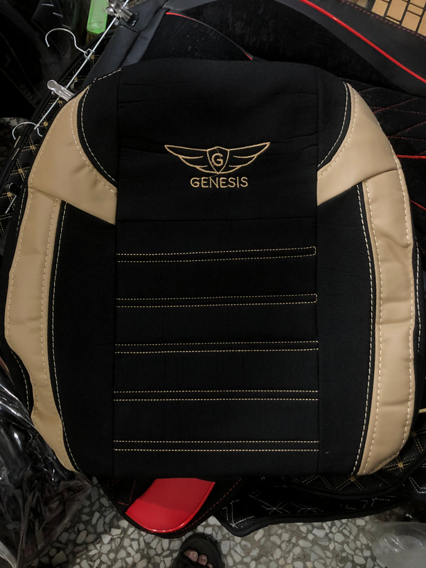 روکش صندلی پارس جدید طرح جنسیس چرم پارچه مشکی کرم مناسب پارس مدل ۹۶ به بالا