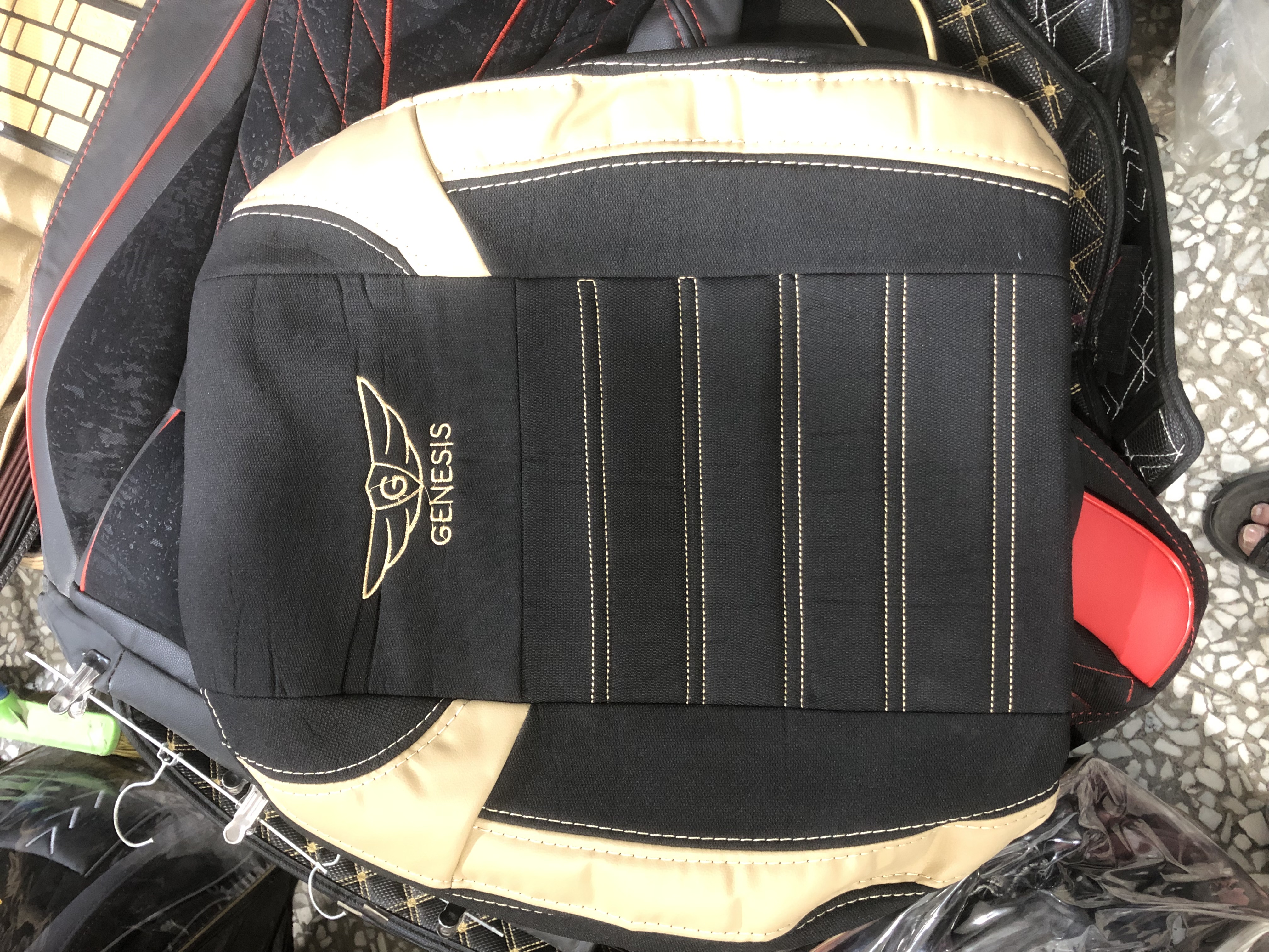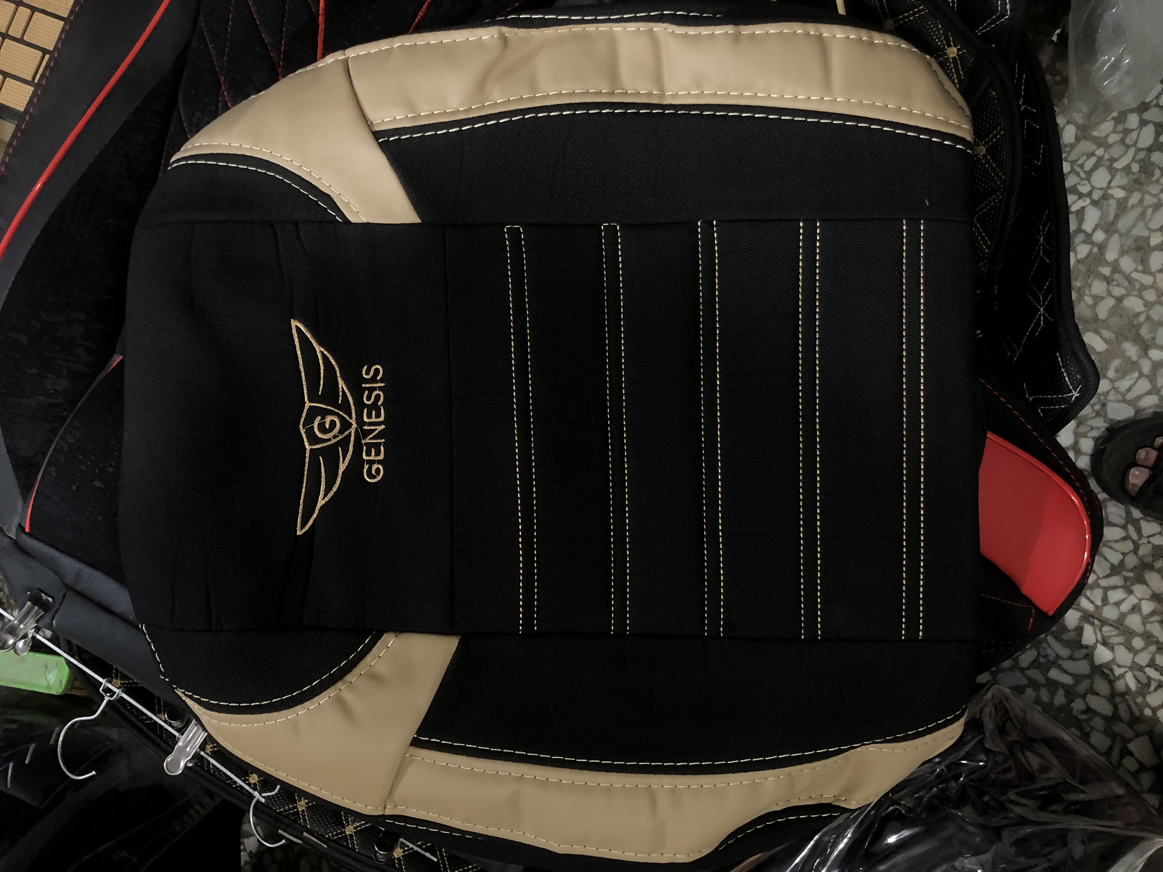 روکش صندلی پارس جدید طرح جنسیس چرم پارچه مشکی کرم مناسب پارس مدل ۹۶ به بالا