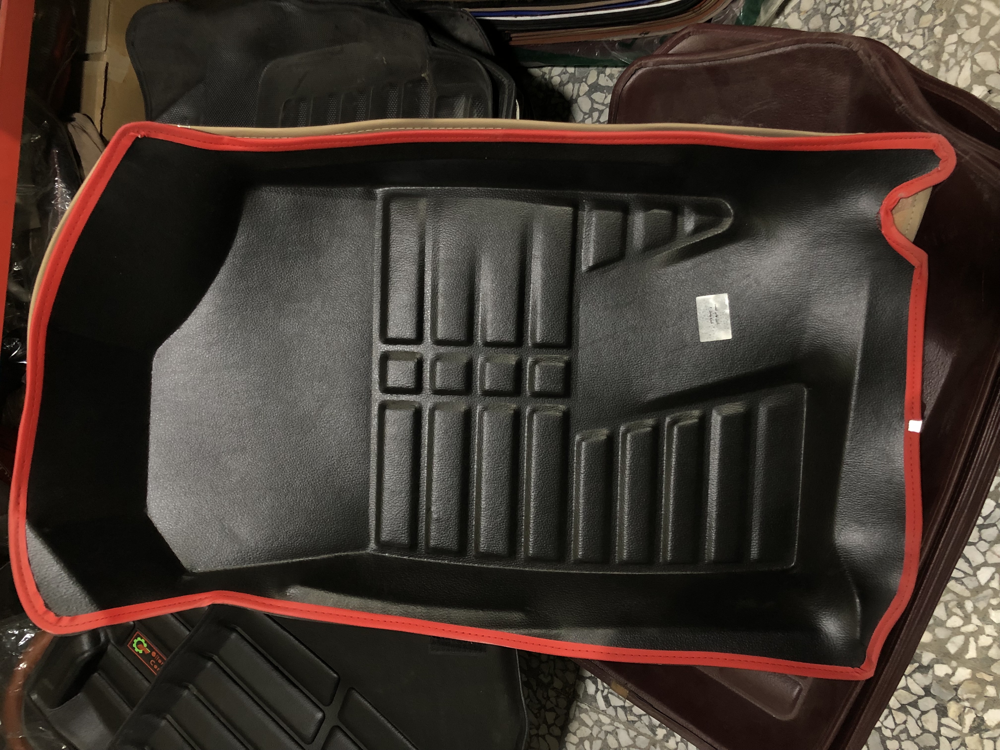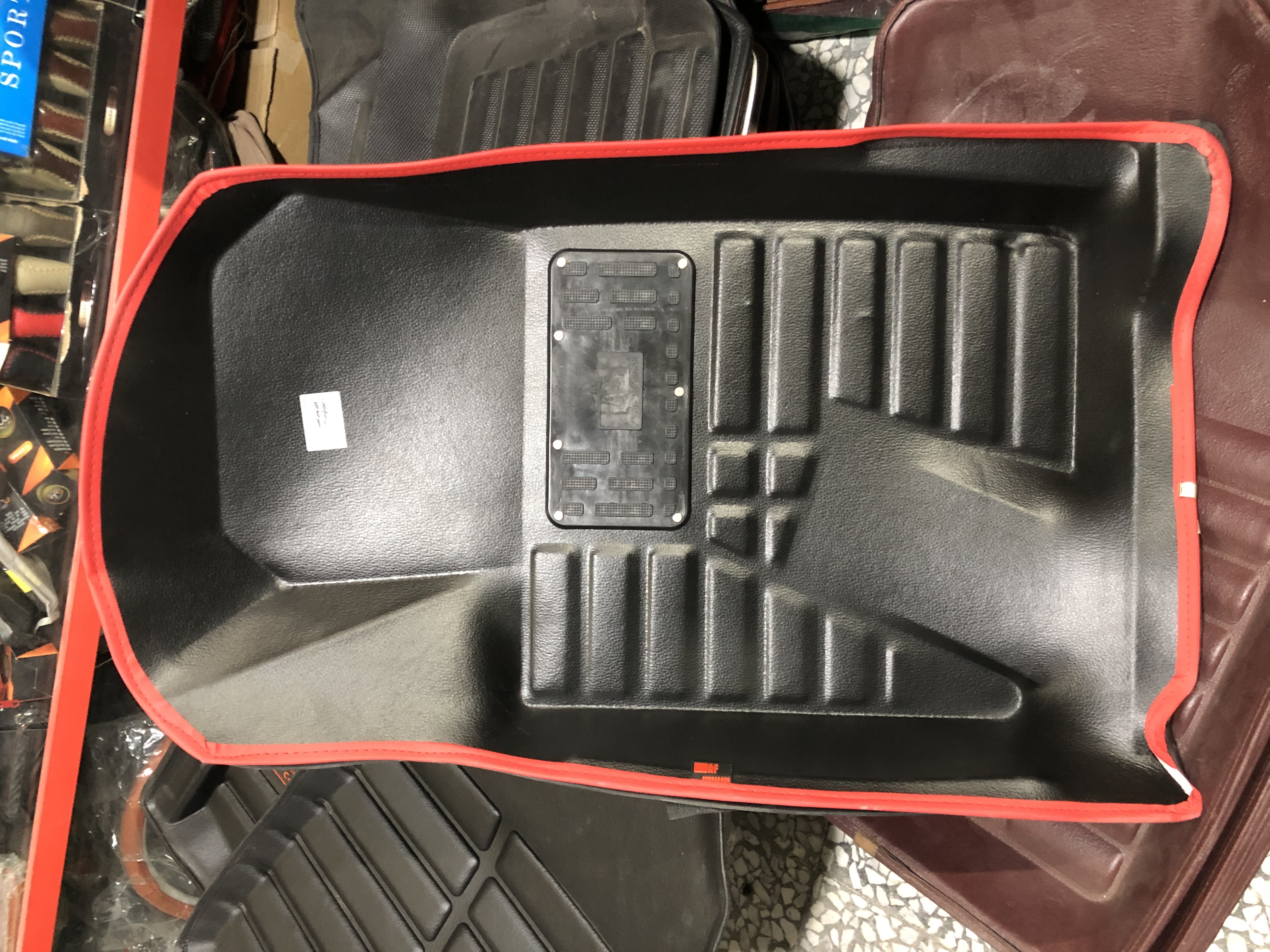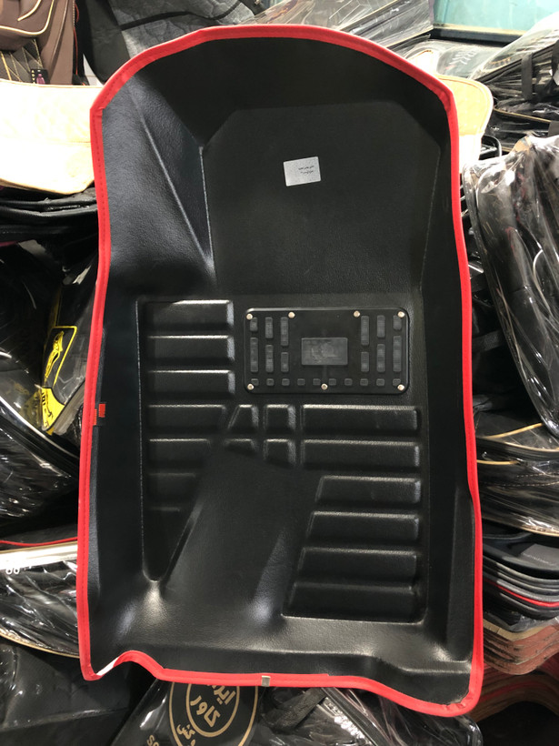 کفی پنج بعدی مناسب خودروهای پژو پارس و ۴۰۵ سمند و سمند سورن دنا و دنا پلاس پنج بعدی چرم دور دوخت پشت نمدی رنگ مشکی با دوخت لبه قرمز دست کامل شامل سه تکه جلو و عقب