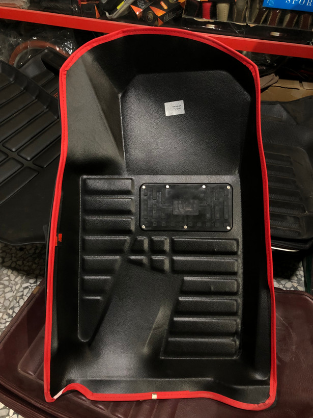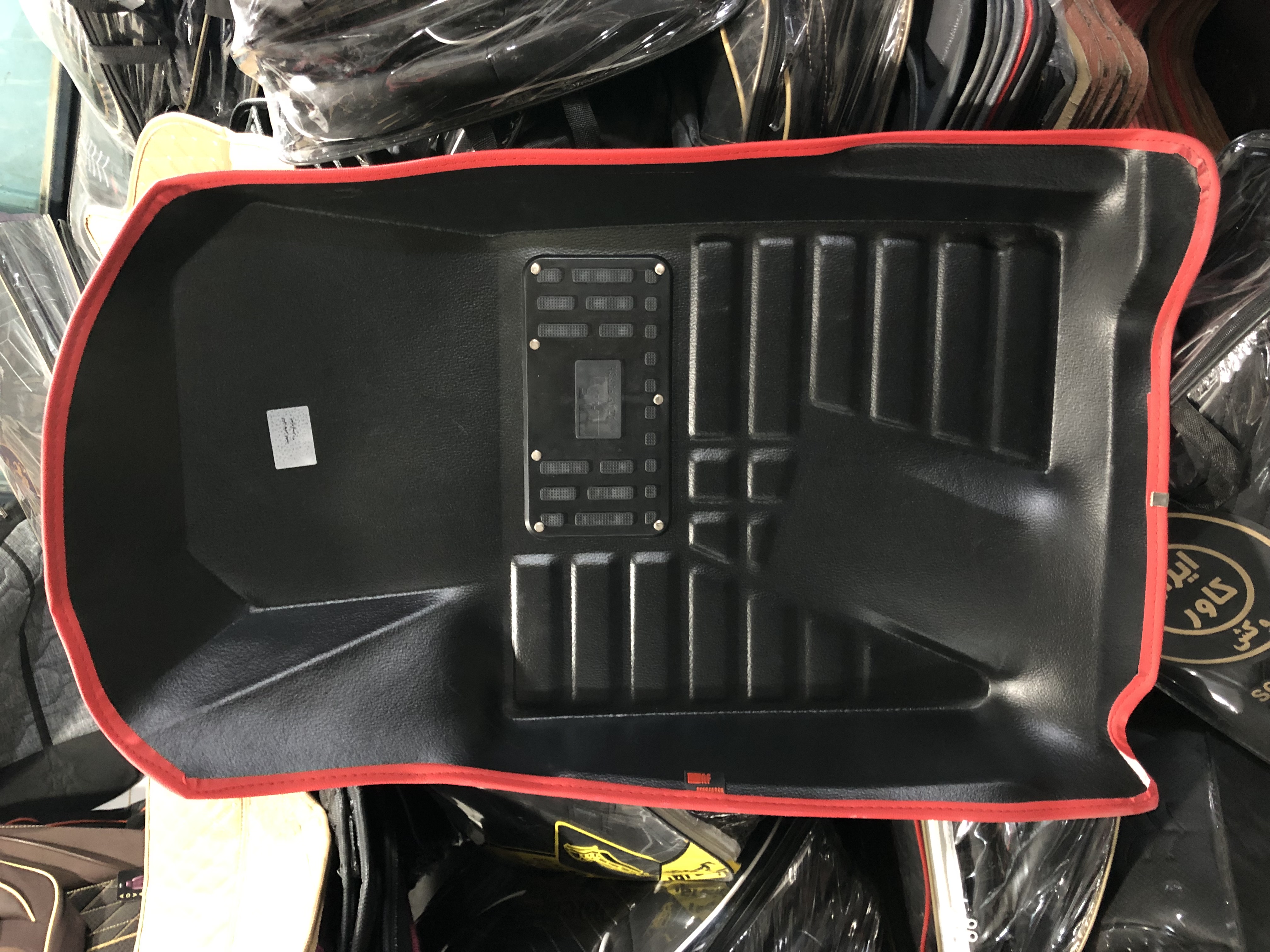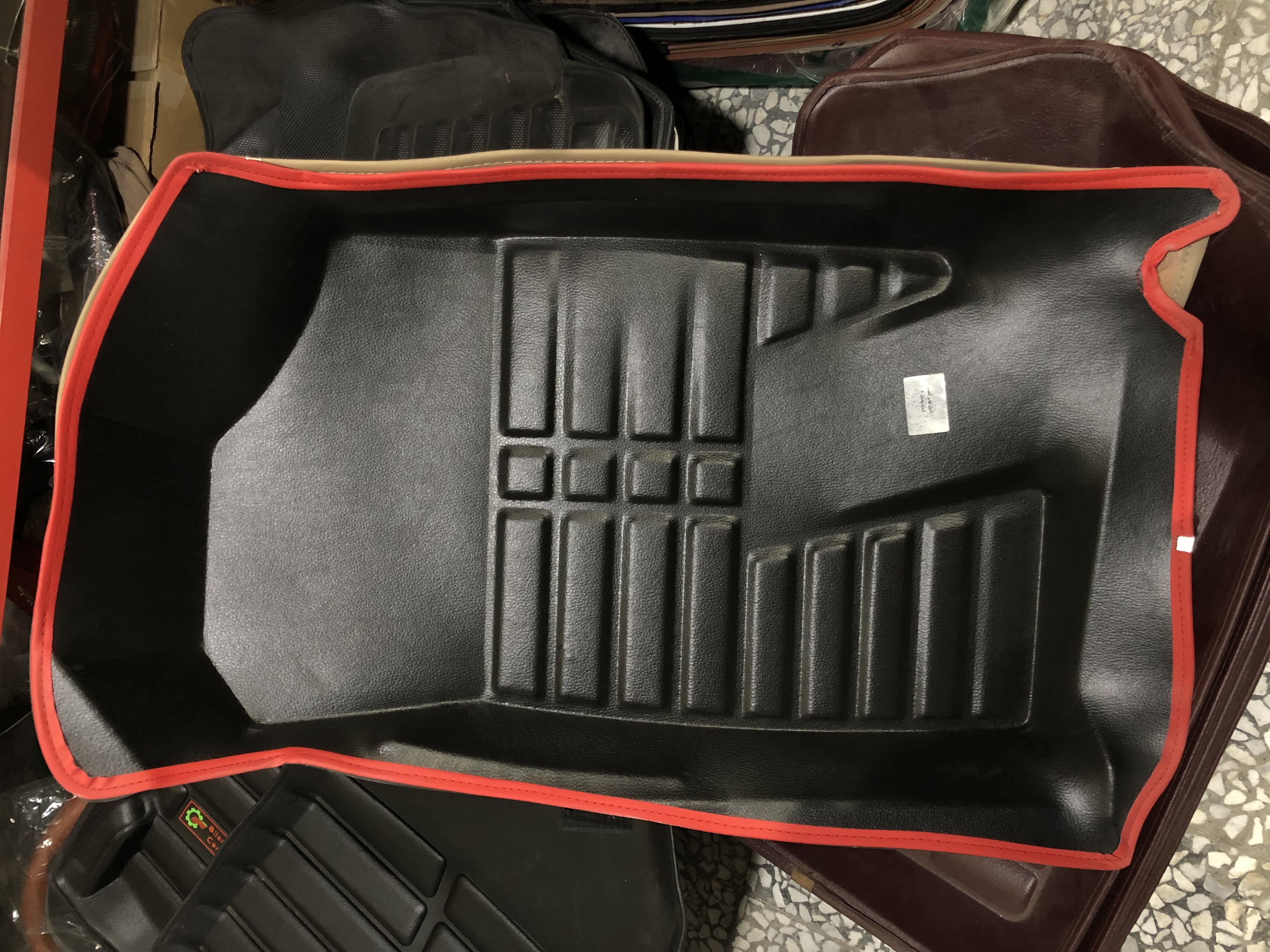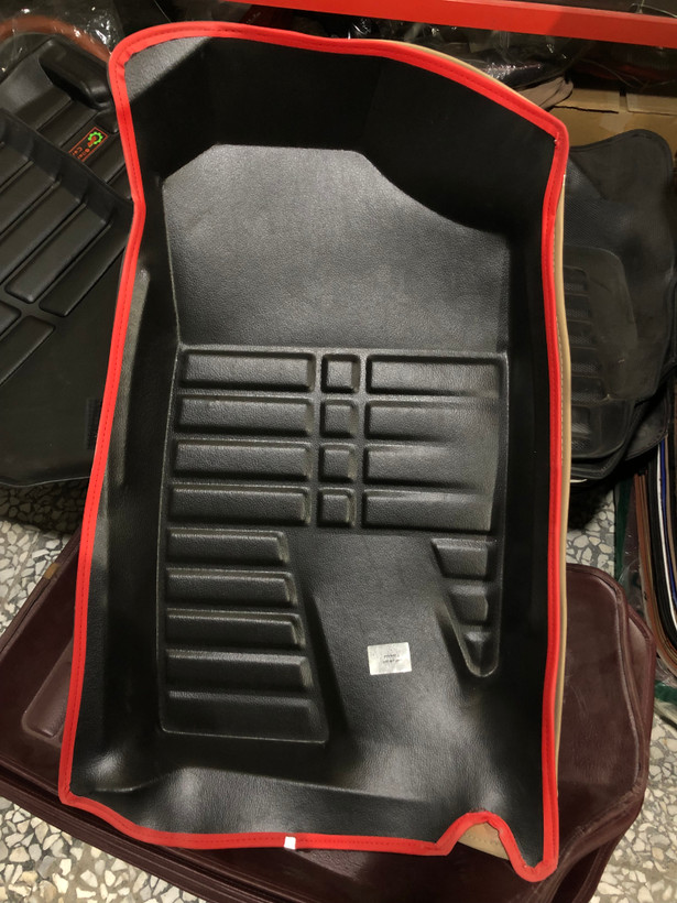 کفی پنج بعدی مناسب خودروهای پژو پارس و ۴۰۵ سمند و سمند سورن دنا و دنا پلاس پنج بعدی چرم دور دوخت پشت نمدی رنگ مشکی با دوخت لبه قرمز دست کامل شامل سه تکه جلو و عقب